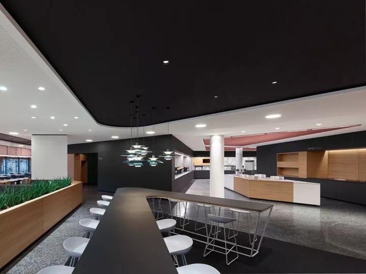 設計以開放的格局營造寬敞的空間體量,清新靚麗的色彩和豐富的材質肌理令整個空間有著大學校園般的青春氛圍。可調節高度的升降桌、充滿活力的綠植墻、提供健康飲食和零食的自助餐吧,深圳裝修公司設計體現以人為本的設計哲學。