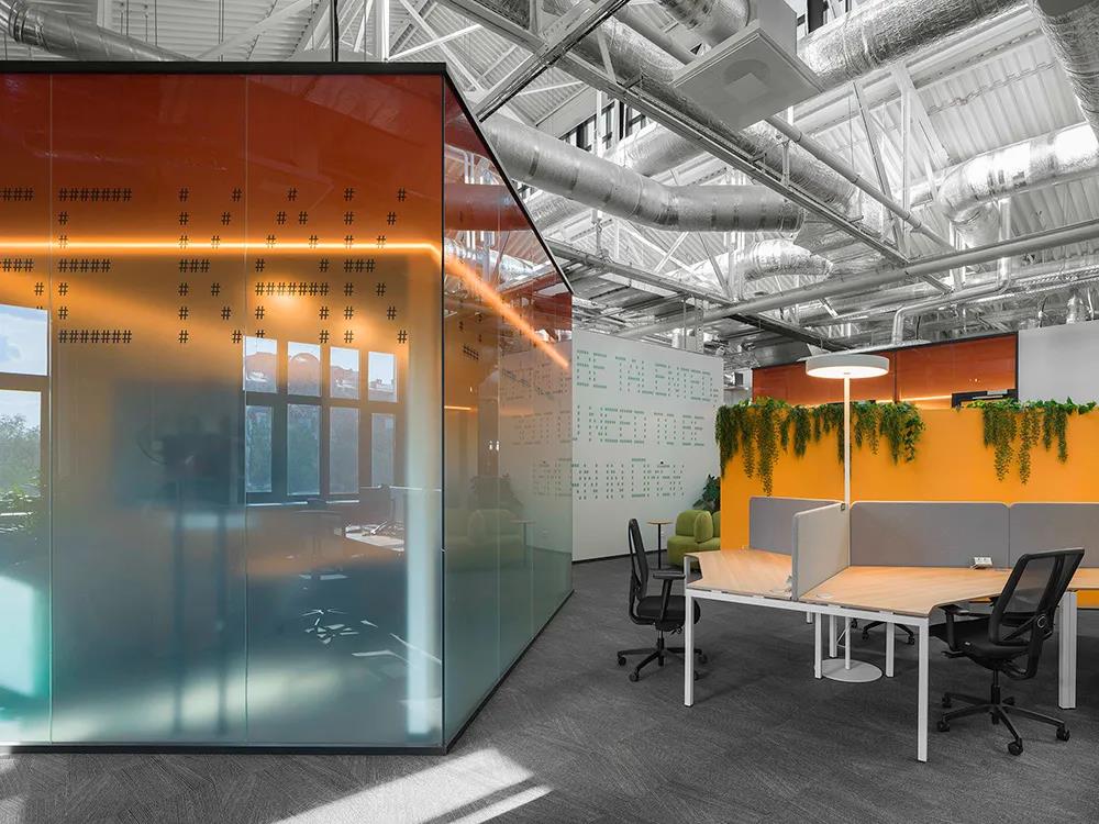 接待區配備了數字能量立方裝置——像素聚集在一起,形成強大的能量場。該設備具有象征意義,意味著這里的辦公環境具有強大的能量磁場,吸引了業內最優秀的IT人才。動態環境設計為有效工作注入活力,每個空間都有獨特的解決方案。例如,各種形式的懸浮文字、各種圖形和空間中的照明設備。深圳裝飾公司與現代風格相結合,彰顯時代氣息,營造高效時尚氛圍:超高工業風格形式的頂部結構,以及經過修復的金屬柱梁,讓會議室看起來更有效率。同時,裝飾公司獨特的紅磚墻永遠是最好的解決方案之一。